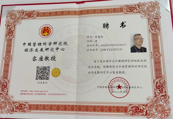 为发扬传统易学精神,创立了肇庆市自然堂易学研究工作室,经官方考评授予:国学文化传承师(高级),中医健康管理师(高级),受聘中国管理科学研究院经济发展研究中心客座教授;特邀担任:非遗易学文化传播大使(名人百科),易学文化传承导师(名人名家)。入编:易界创新人物(2021)、易界领军人物(名家智库);